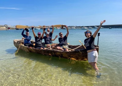 Dans le cadre du programme Geopras, les 1er et 2 août 2025, l’association Koruc renforcée de pagayeurs et de pagayeuses du kayak club de Brest, ont effectué une liaison aller-retour entre Port-Maria (à Quiberon) et le Port de Sauzon (à Belle-Ile-en-Mer) soit 29 km en pleine mer.